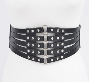 High Waisted, looks killer with dresses or body suits - featuring multi strap with studs & o rings & stretch elastic backing.