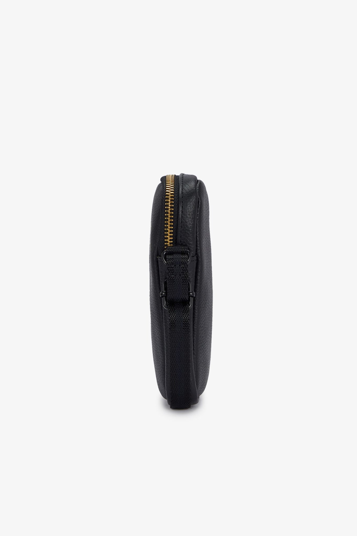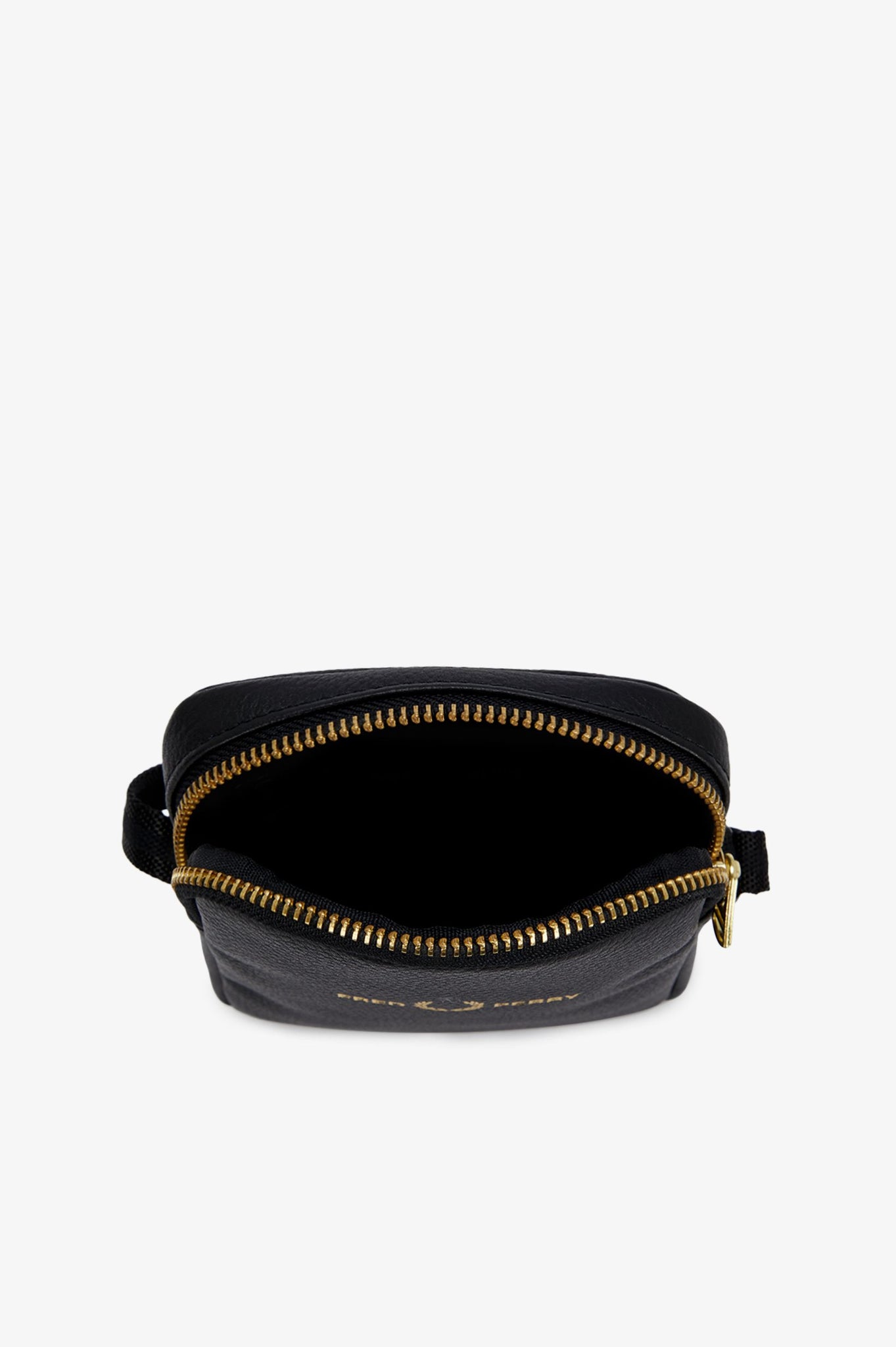 Leather Classic Side Black with Gold Colored Sipper & Logo Embossed on the front.