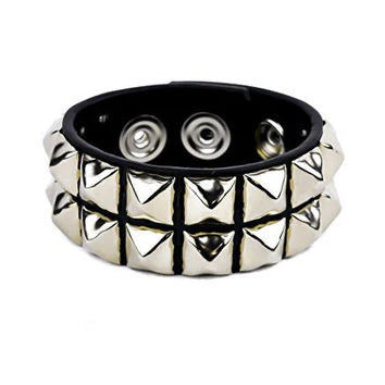 Two - Double Row Pyramid Leather Wristband