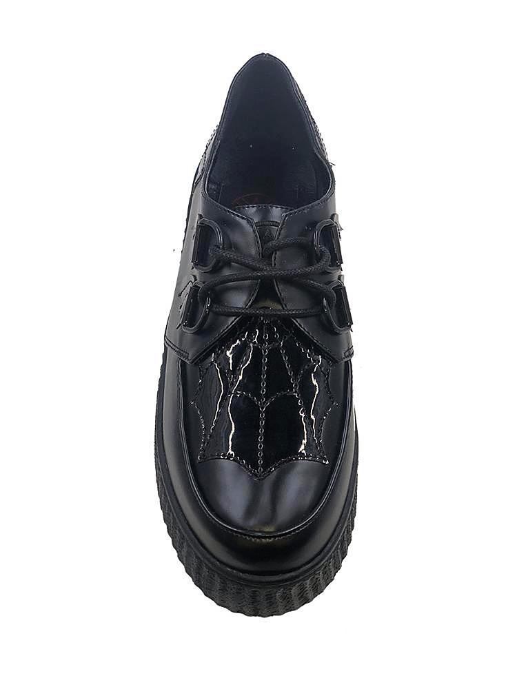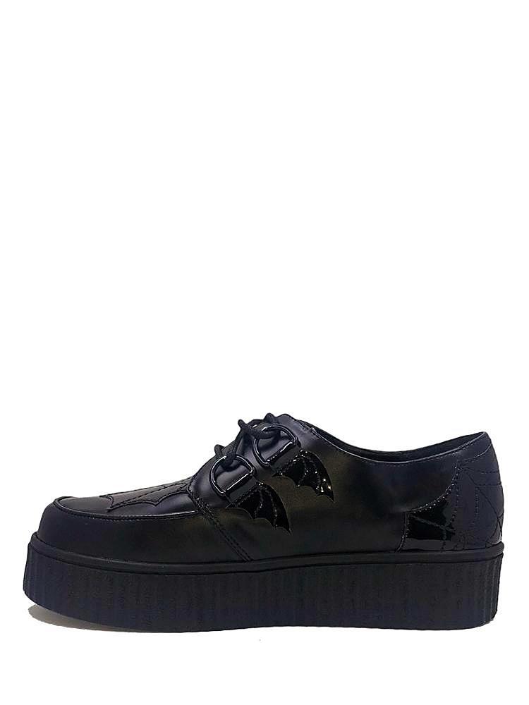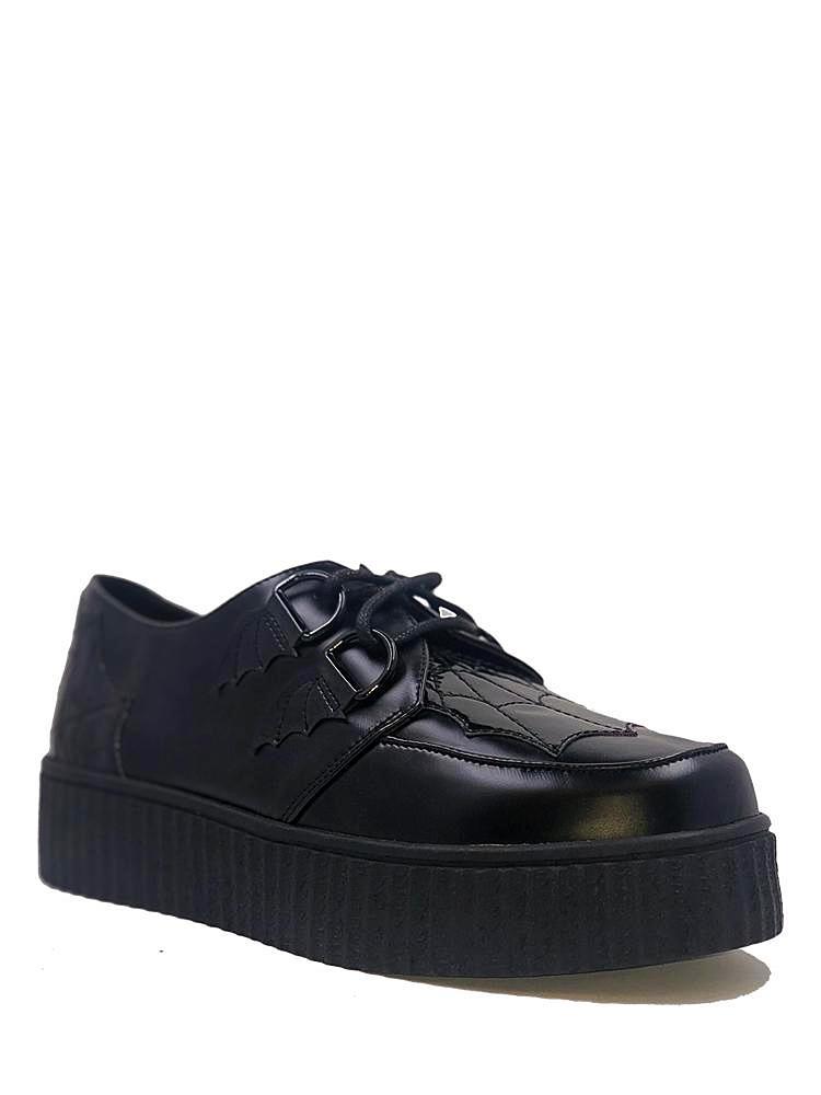 Strangecvlt Brand New Krypt Kreepers are here! These rad new black on black creepers are sure to make any dark heart swoon. Fully vegan, with black stitched web and bat wing detail. Perfect for cemetery strolls.