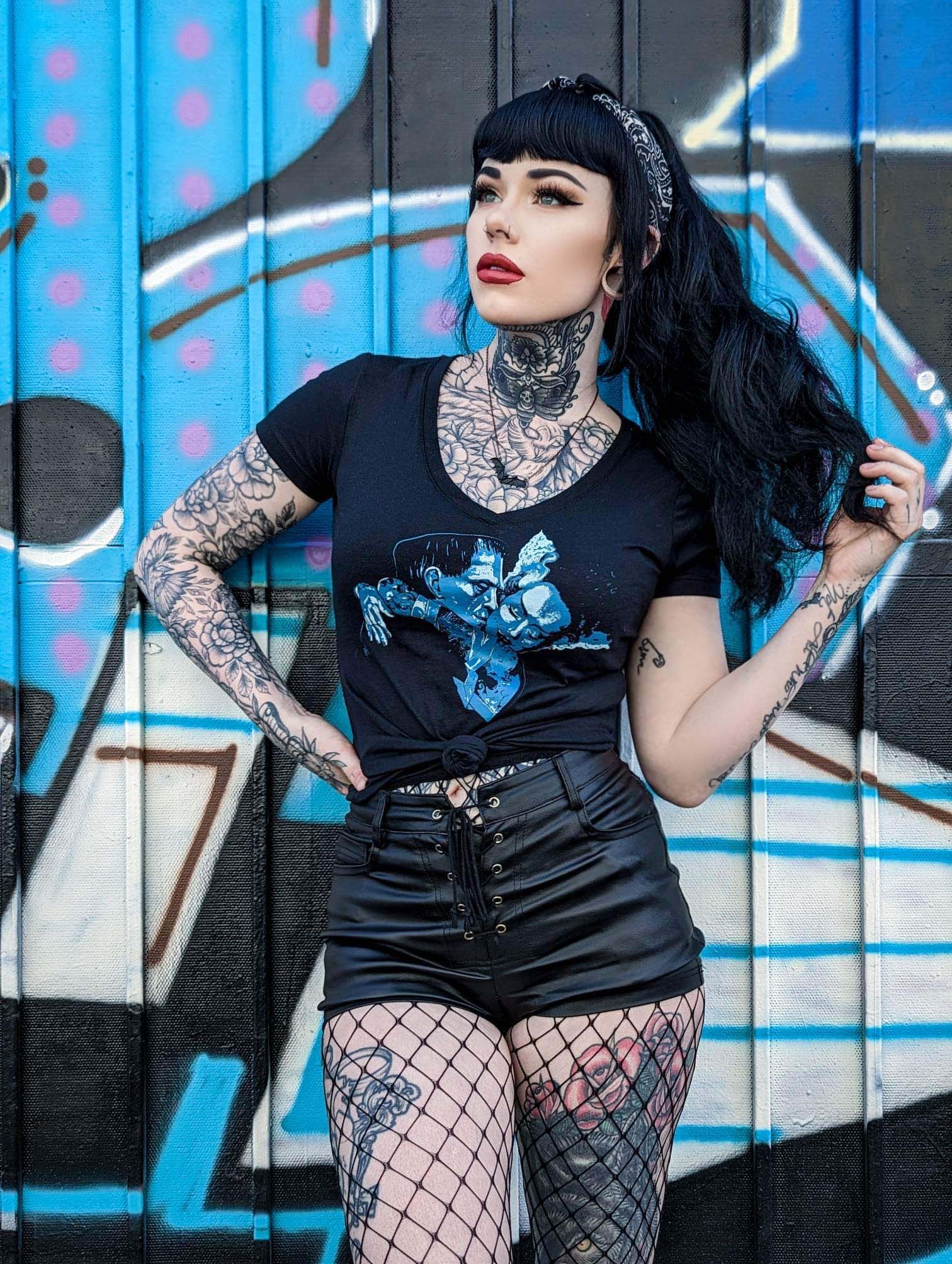 Undying Monster Black V Neck Top