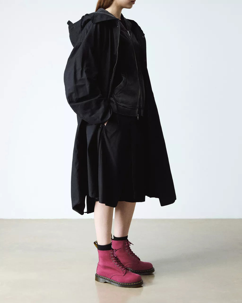 Rich in color and texture. This pigment-heavy adaptation of the Original DM’s boot is crafted from Milled Nubuck WP — a tumbled, soft-to-touch leather that’s unbound at the ankle for easy movement. We finished the boot with antique gold eyelets, tonal fuchsia laces, and a black and yellow heel loop. The air-cushioned DMS sole is instantly recognizable with its signature grooving, yellow welt stitching, and distinctive undersole pattern. We've chosen this leather specifically for its depth of color. You might find some of the dye transfers, so try and wear with darker colors if you can.