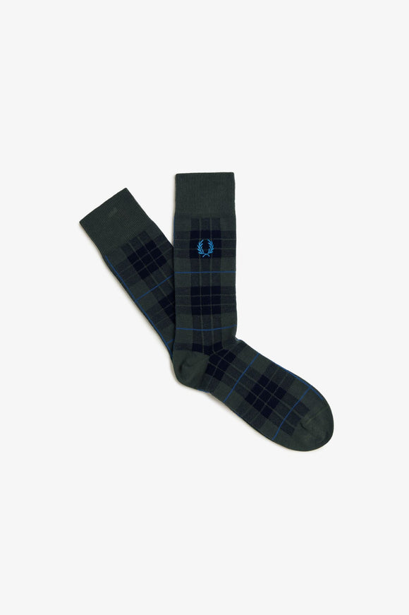 Our cotton blend socks in tartan with signature Laurel Wreath embroidery.