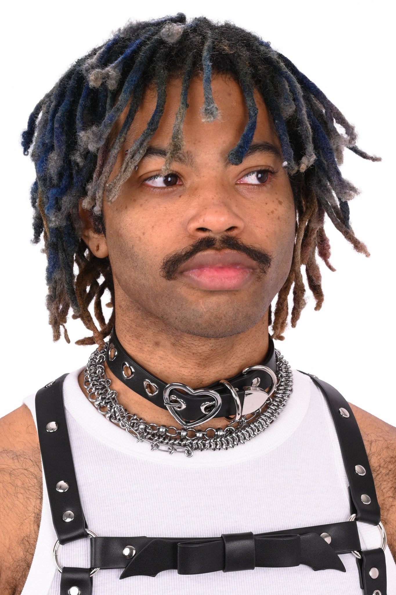 This black PU choker necklace is complete with a cute heart buckle. The heart rivets are not only cute, but go all around the length of the choker, offering an extremely adjustable fit.