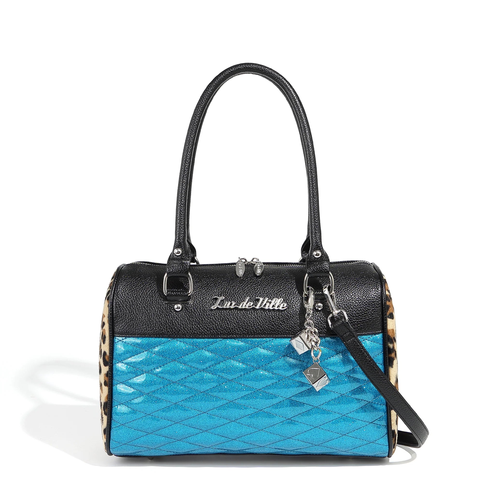 A lux de Ville staple!! These beautiful totes feature diamond stitching front and back, Lux logo plate, silver bullet feet and detachable silver dice baubles. Inside is lined with custom black on black leopard lining and an inside zipper closure pocket for storage or travel. As always there is an adjustable and detachable cross body strap and a dust ruffle bag for storage or travel. Enjoy the cuteness!