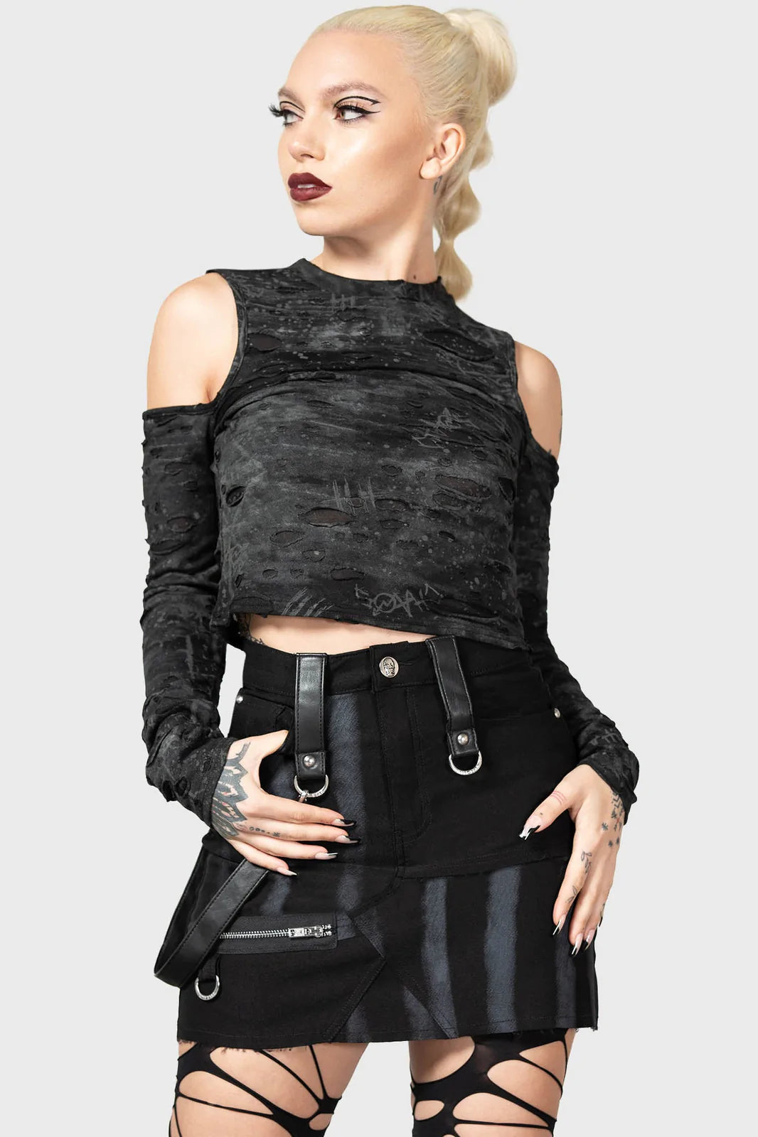 KILLSTAR branding, 73% Viscose, 23% Polyamide, 4% Elastane.