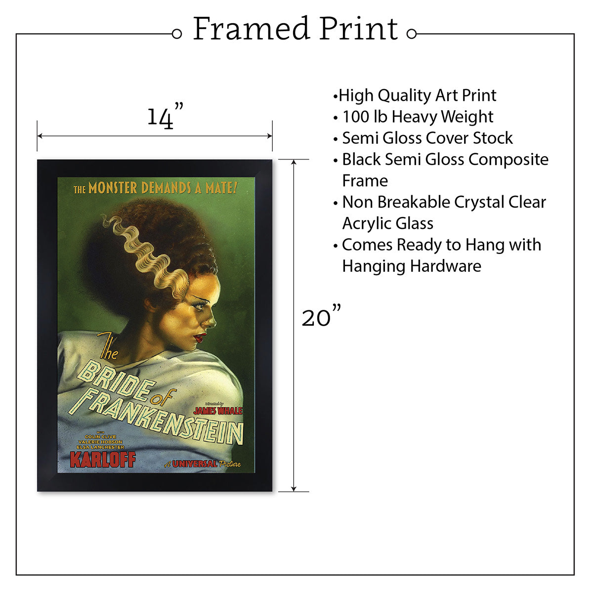 • Frame is 1.25 inch Black Matte Composite Frame with Crystal Clear Plexiglass and Comes Ready to Hang with Hanging Hardware