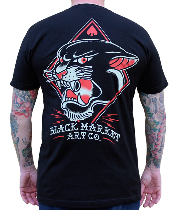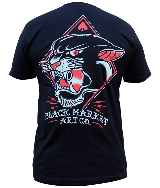 Rad Tattoo Flash Panther Shirt printed on a high quality black cotton tee. Doubled Sided